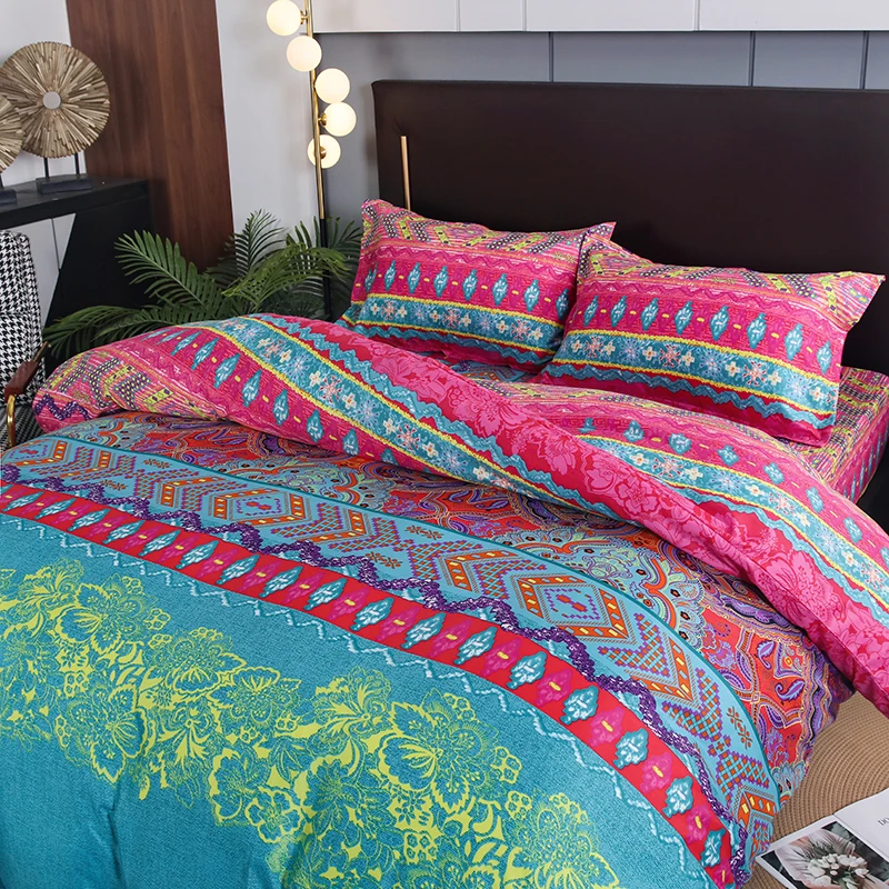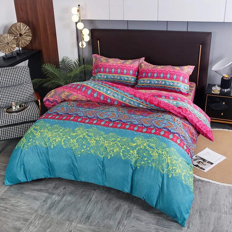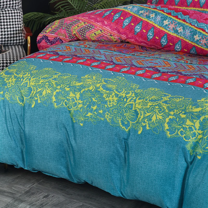 European and American Bohemian Style Printed Quilt Cover and Pillowcase Three-Piece Quality Bedding Set Factory Direct Supply